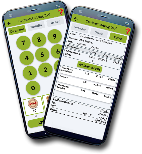 Erfasse und berechne mit dem Festmeterrechner deine gesägten Baumstämme direkt an der Säge!