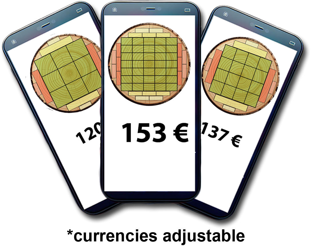 - Einschnittoptimierung🧠: Maximiere deine Ausbeute pro Baumstamm durch präzise Schnittbilder